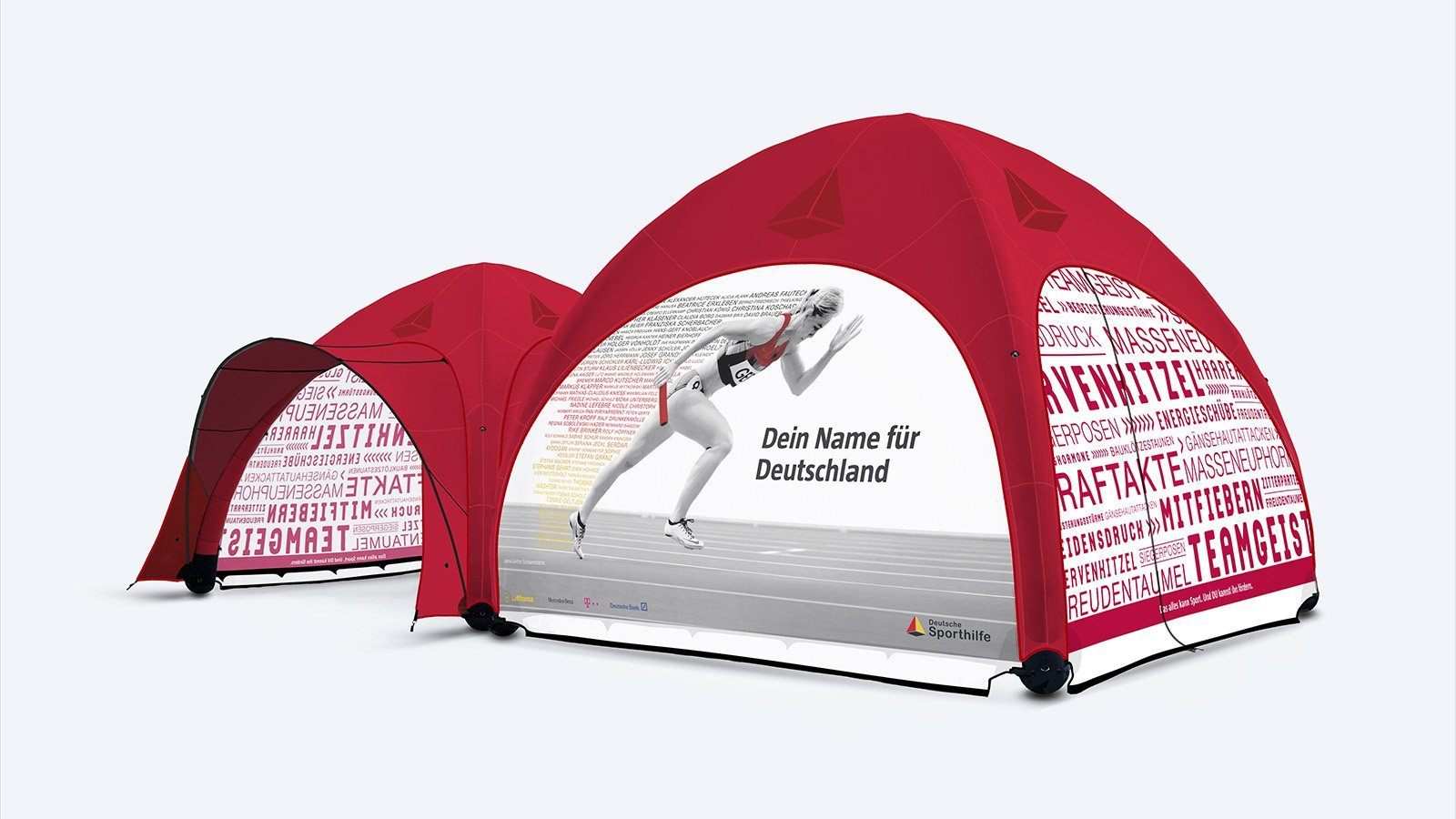 Auffalten, Aufpumpen, fertig. Spektakulär im Design, schnell und unkompliziert in Aufbau und Abbau, einfach in Lagerung und Transport, stabil, sicher, strapazierfähig und auf die Bedürfnisse unserer Kunden und ihrer Marken anpassbar - das alles ist das EVENT TENT von GYBE